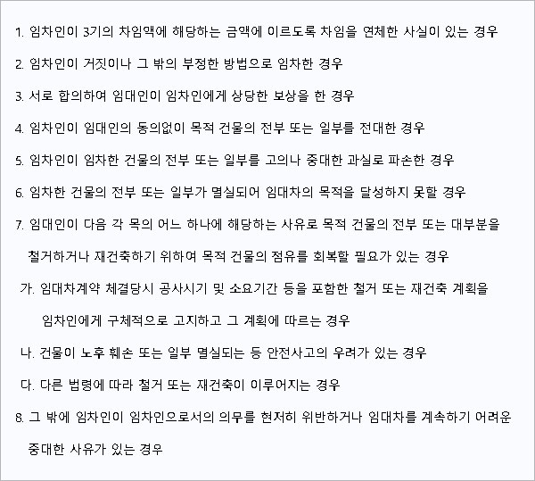 임대인이 계약갱신요구권을 거절할 수 있는 경우