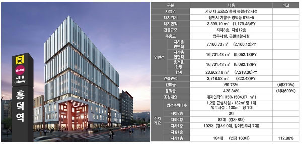 흥덕역 리써밋은 경기도 용인시 기흥구 영덕동 975-5 일대에 지하 3층 ~지상 12층에, 상가 77실, 섹션오피스 214실 규모의 업무복합단지입니다.