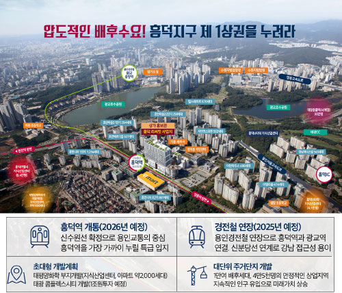 흥덕역 리써밋이 위치해 있는 용인 흥덕지구는 지역 장점으로부터 얻을 수 있는 비즈니스 시너지 효과가 뛰어난 곳입니다. 흥덕지구는 광교와 영통 사이에 위치하여 광교 호수공원, 광교 롯데 아울렛, 홈플러스 원천점, 아주대학교병원 등 두 지역의 편의시설을 쉽게 이용할 수 있고, 삼성전자 수원사업장 및 삼성전기 수원사업장이 인접한 비즈니스 중심지구이며 항아리 상권 형태를 띠고 있기 때문에 상권 이동이 적을 수밖에 없어 위험성이 낮고 메리트가 높다는 장점이 있습니다.