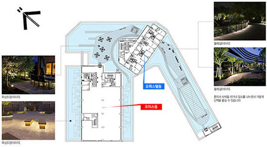 단지는 오피스텔(주거용)과 오피스(사무실)로 공급된 업무복합 빌딩입니다. 지하 1층~지상 3층까지 상업시설, 오피스동 4층은 업무지원시설이며, 5층~24층까지 업무시설(340실)로 구성되었습니다. 오피스텔동은 4층~25층까지이며, 주거용 오피스텔(105실)로 구성되었습니다.